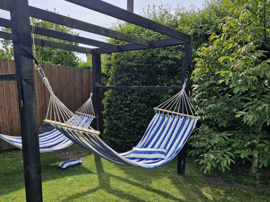Jeg har egentlig aldrig tænkt over, at jeg har et decideret yndlingslæsested – men jeg blev nysgerrig og spurgte hele husstanden, hvor de mente, jeg læser bedst. Alle fire svarede uafhængigt af hinanden: ”I hængekøjen”. Så det må jo være mit sted.